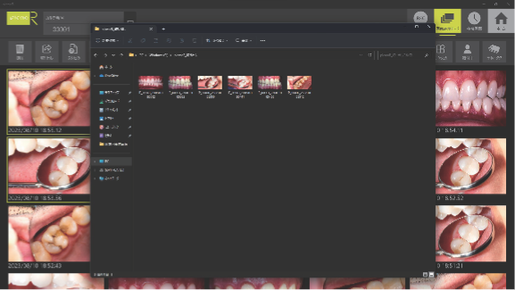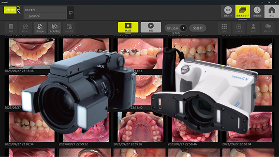 AUSB等で接続し、取り込み(インポート)機能を利用することで、口腔内写真等の静止画や動画を取り込んで一元管理することが可能です。松風のアイスペシャルはボタン1つで取り込む連携が可能です。